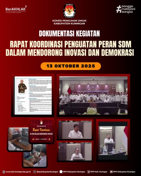 #TemanPemilih, KPU Kabupaten Kuningan mengikuti Rapat Koordinasi Penguatan SDM dalam Mendorong Inovasi dan Demokrasi lewat aplikasi daring (Zoom Meeting), pada Hari Senin, 13 Oktober 2025.