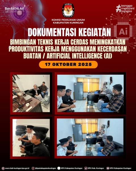 #TemanPemilih, KPU Kabupaten Kuningan mengikuti Bimbingan Teknis Kerja Cerdas Meningkatkan Produktivitas Kerja Menggunakan Kecerdasan Buatan / Artificial Intelligence (AI) yang digelar oleh KPU RI secara daring (zoom meeting) pada Hari Jumat, (17/10/2025).