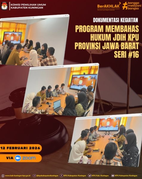 KPU Kabupaten Kuningan telah mengikuti Kegiatan Program Membahas Hukum (MH) Jaringan Dokumentasi dan Informasi Hukum (JDIH) KPU Provinsi Jawa Barat seri #16 via zoom meeting dengan KPU Kabupaten/Kota se Jawa Barat.