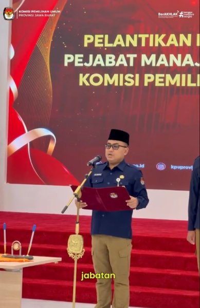 Original post by @kpuprovinsijabar #repost #TemanPemilih, Sebanyak 22 Pejabat Manajerial di lingkungan Sekretariat KPU Provinsi Jawa Barat resmi dilantik dan diambil sumpah/janjinya pada Selasa (10/3/2026) di Aula KPU Provinsi Jawa Barat, Bandung. Prosesi pelantikan dilaksanakan secara luring dan daring dengan penuh khidmat.