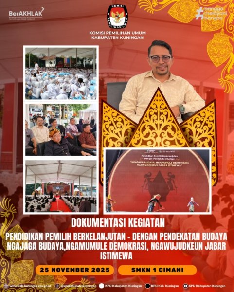 #TemanPemilih, KPU Kabupaten Kuningan telah mengikuti Kegiatan Pendidikan Pemilih Berkelanjutan dengan pendekatan budaya melalui pergelaran Wayang Golek bertema "Ngajaga Budaya, Ngamumule Demokrasi, Ngawujudken Jabar Istimewa", di SMKN 1 Cimahi Kota Cimahi pada Hari Selasa (25/11/2025).